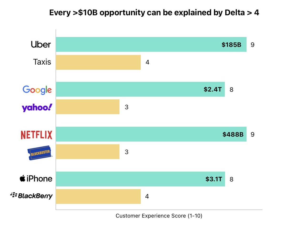 Cada oportunidad de 10.000 millones de dólares puede explicarse con una simple heurística: La experiencia del cliente Delta-4. (Enlace)